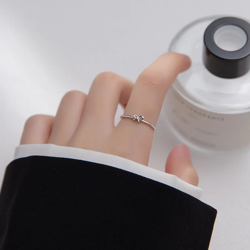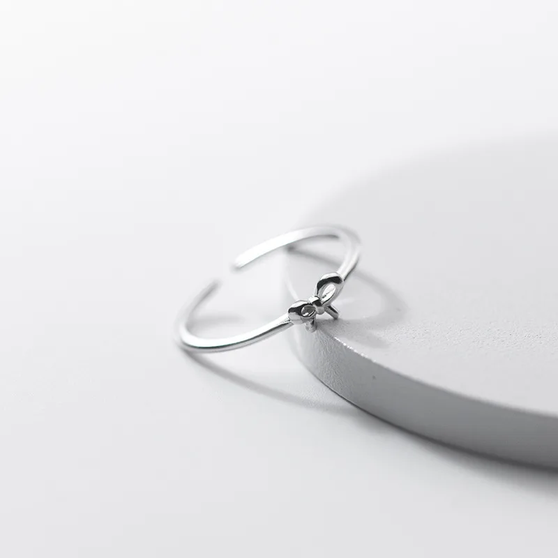 Женское регулируемое кольцо с бантом, из серебра 925 пробы