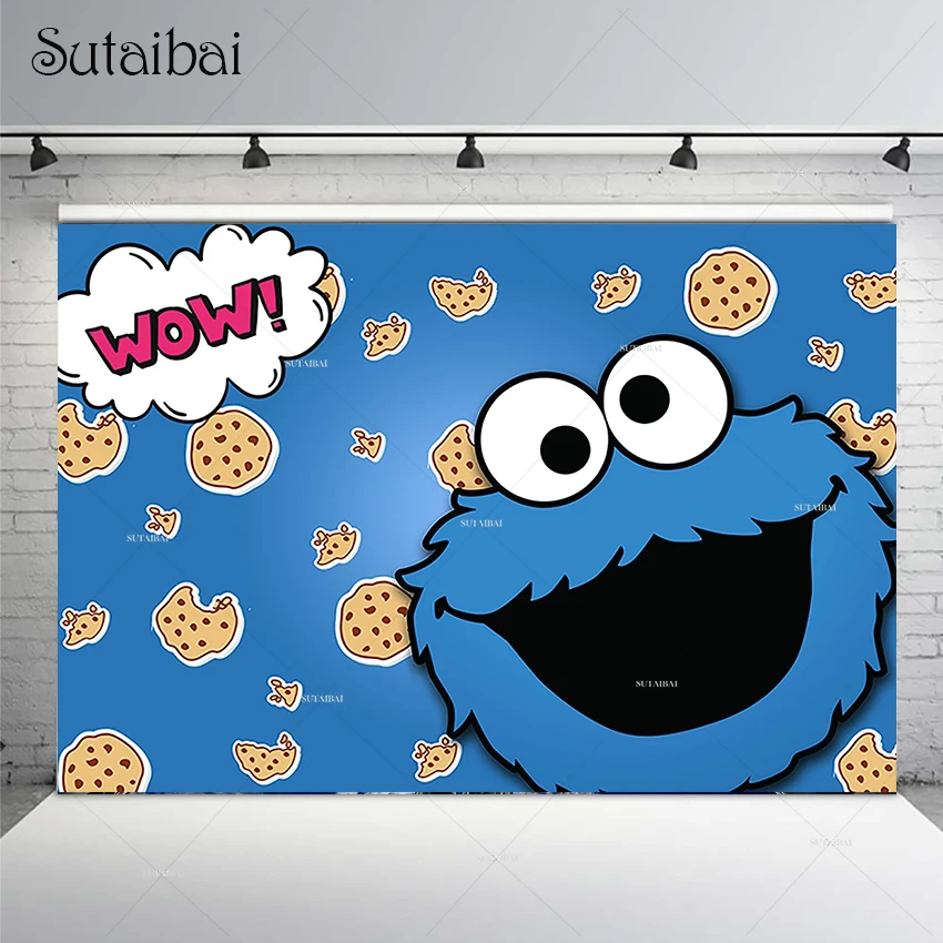 Виниловый фон для студийной фотосъемки с изображением синего печенья монстра Улица Сезам детский душ день рождения