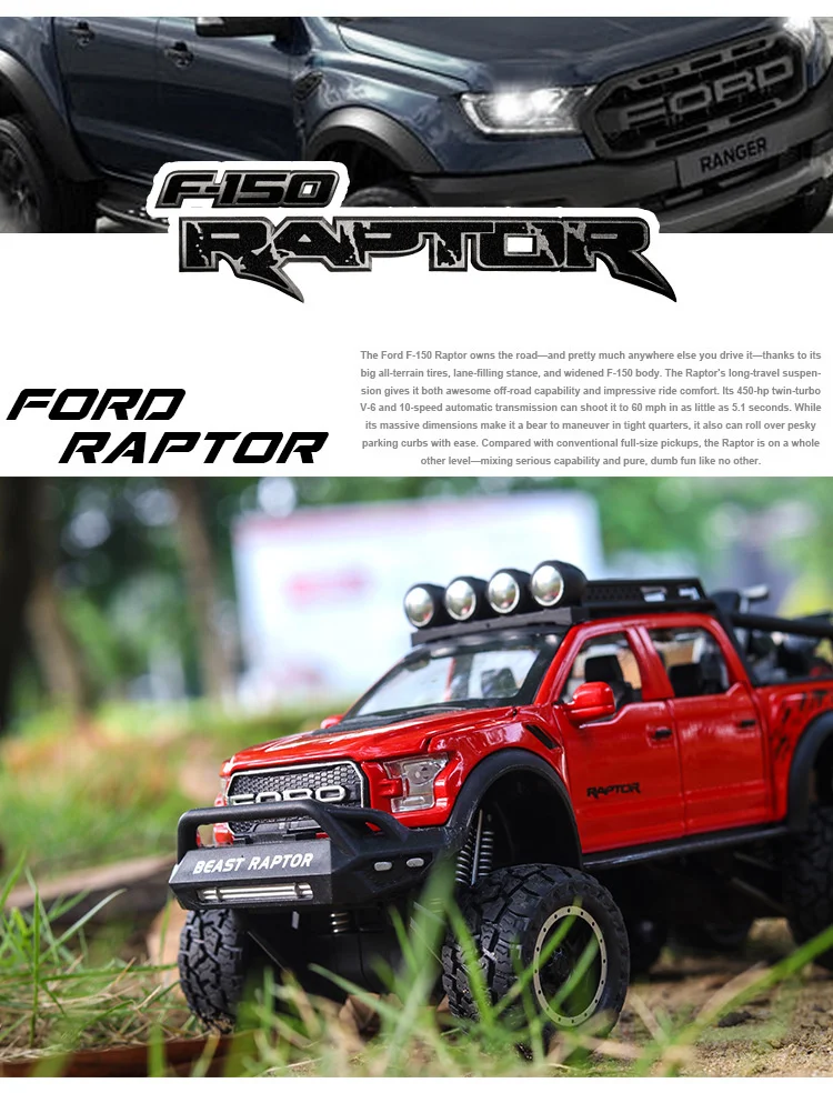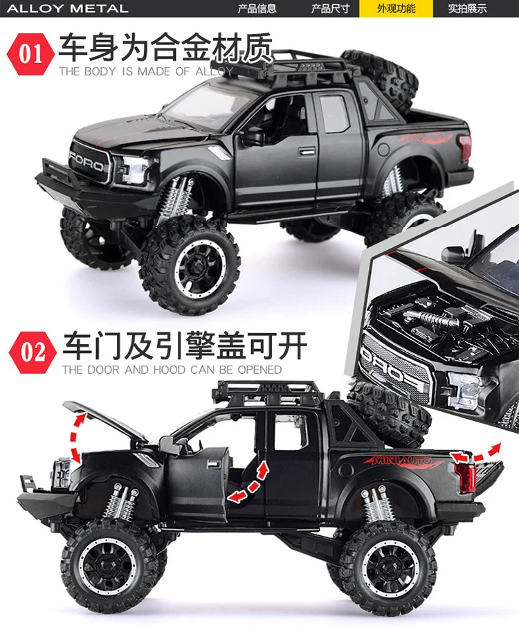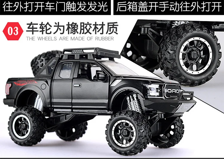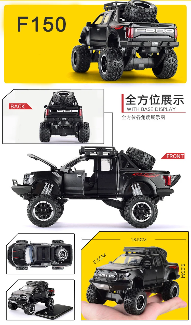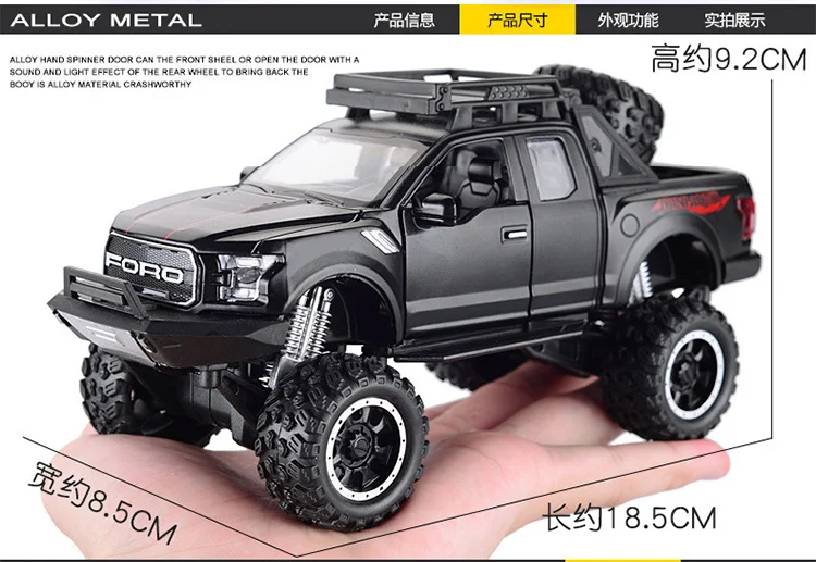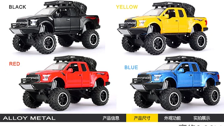 Литая модель автомобиля Ford F150 1:32 из сплава, Радиоуправляемый внедорожник, большой размер колеса, металлический автомобиль, Тяговая игрушка для детей, подарки для мальчиков