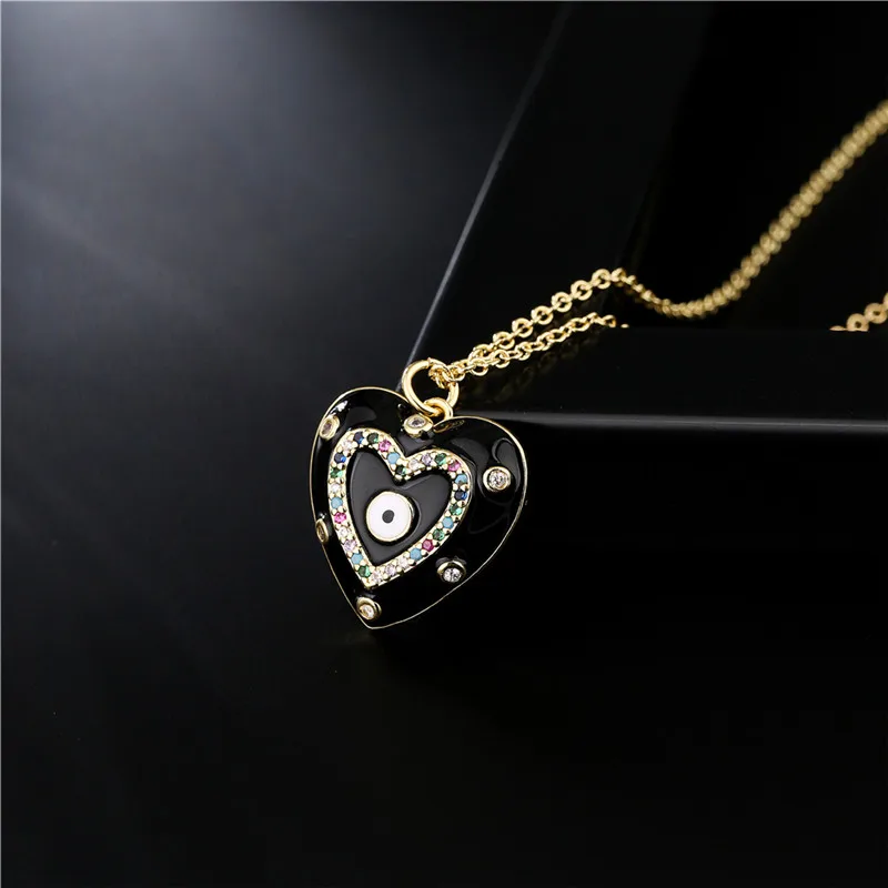 Романтическое женское ожерелье с фианитами в форме сердца, медная подвеска золотого цвета, масляное ожерелье от сглаза, ювелирные изделия для женщин и девушек