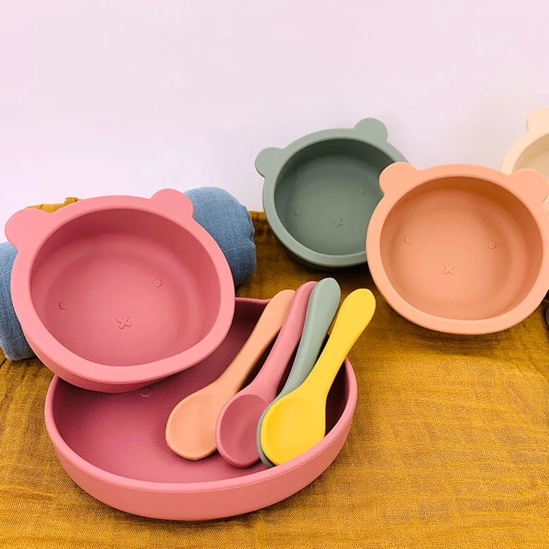 Силиконовая посуда для кормления ребенка, водонепроницаемая и нескользящая посуда, детская посуда не содержит Bpa, силиконовая посуда
