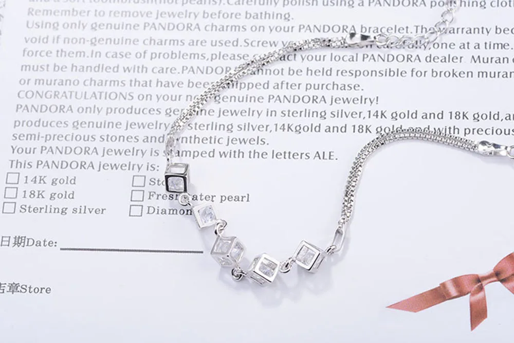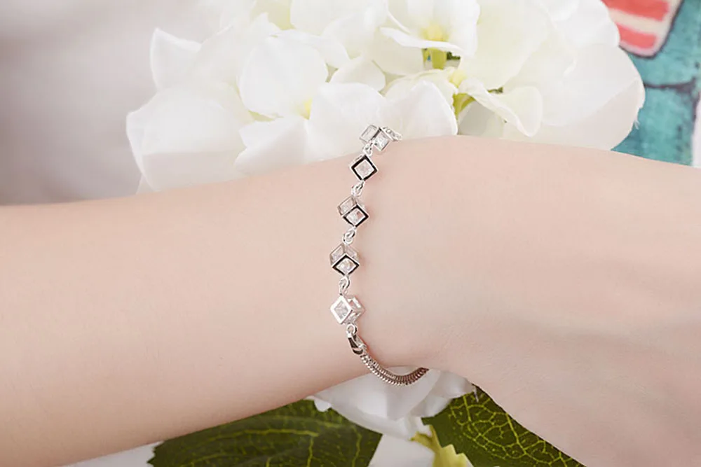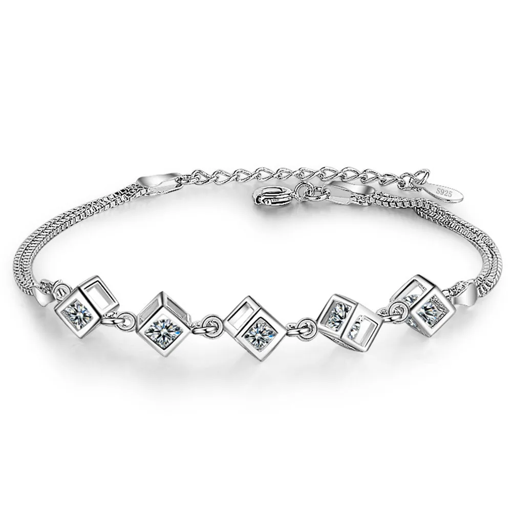Женский браслет с цирконом, серебряное покрытие 925 пробы