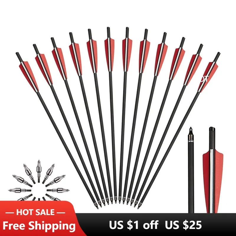 Toparchery 20-дюймовые карбоновые арбалетные болты охотничьи стрелы для стрельбы из лука 20-дюймовые стрелы с 4 дюймовыми лопастями и заменяемыми наконечниками стрел (61224 шт. в упаковке)