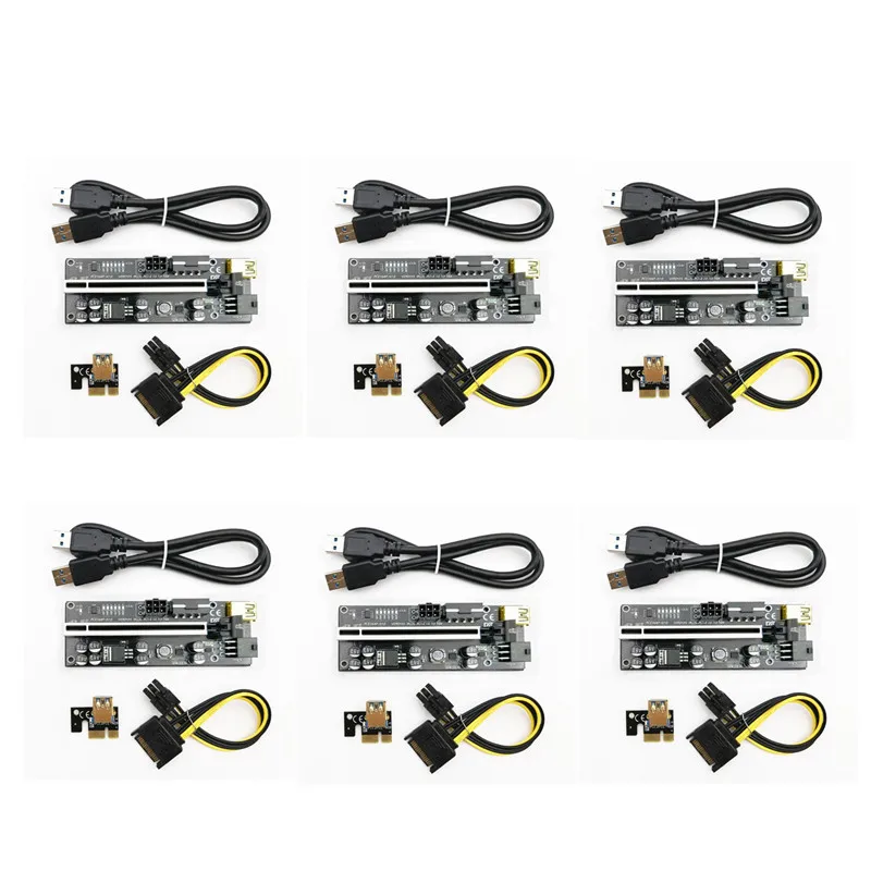 6 шт. PCIE Riser 010s Plus Улучшенная майнинговая супер версия X16 PCI Экспресс расширения адаптер карта SATA 15 контактов на 6 контактов питания