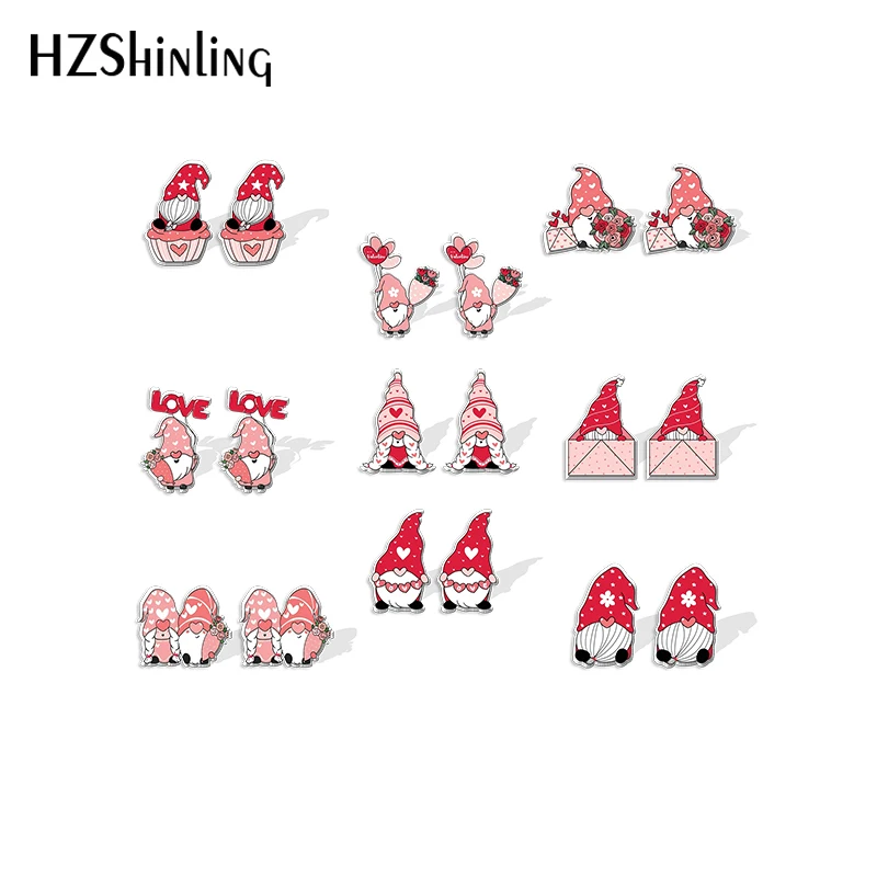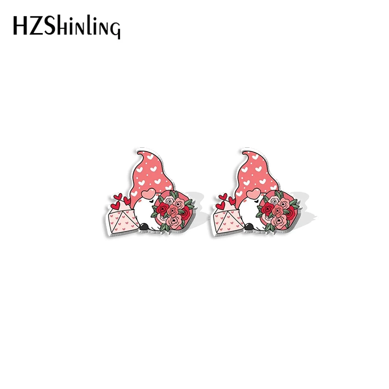 Новинка 2021, серьги-гвоздики в виде гнома на День святого Валентина, Милая женская эпоксидная смола