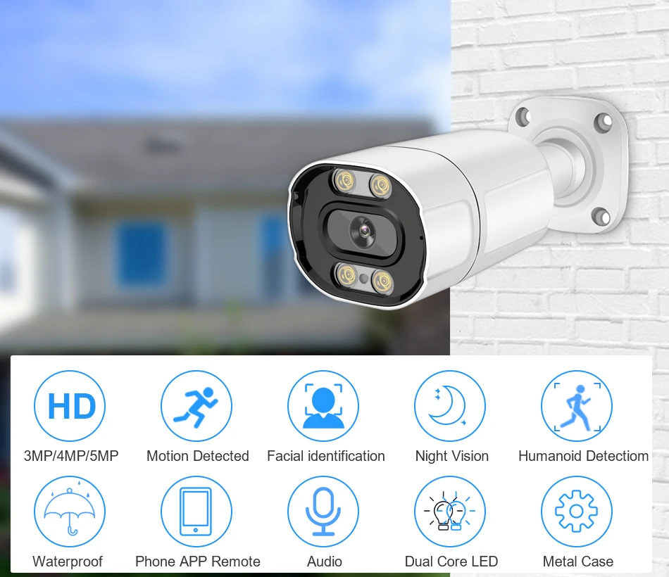 Наружная POE IP-камера Smar 5 Мп4 МП3 Мп, с поддержкой AI, с обнаружением лица, встроенным микрофоном, водонепроницаемая металлическая для домашней безопасности