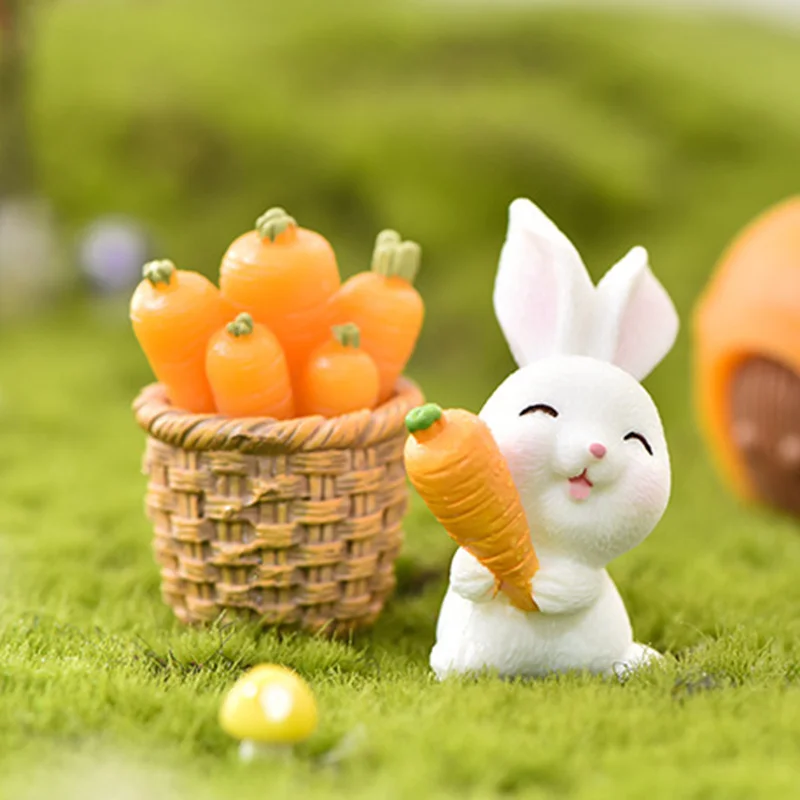 1 Набор Мини кролик морковь Смола Модель мультфильм кролик фигурка кукольный домик миниатюрная Пасхальная Форма Настольная ремесло для дома садовые украшения
