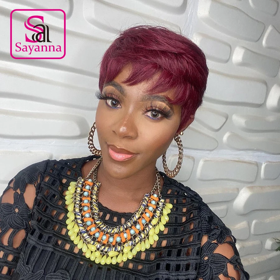 Короткий парик с челкой, бордовый, 99J, дешевые прямые парики из че...