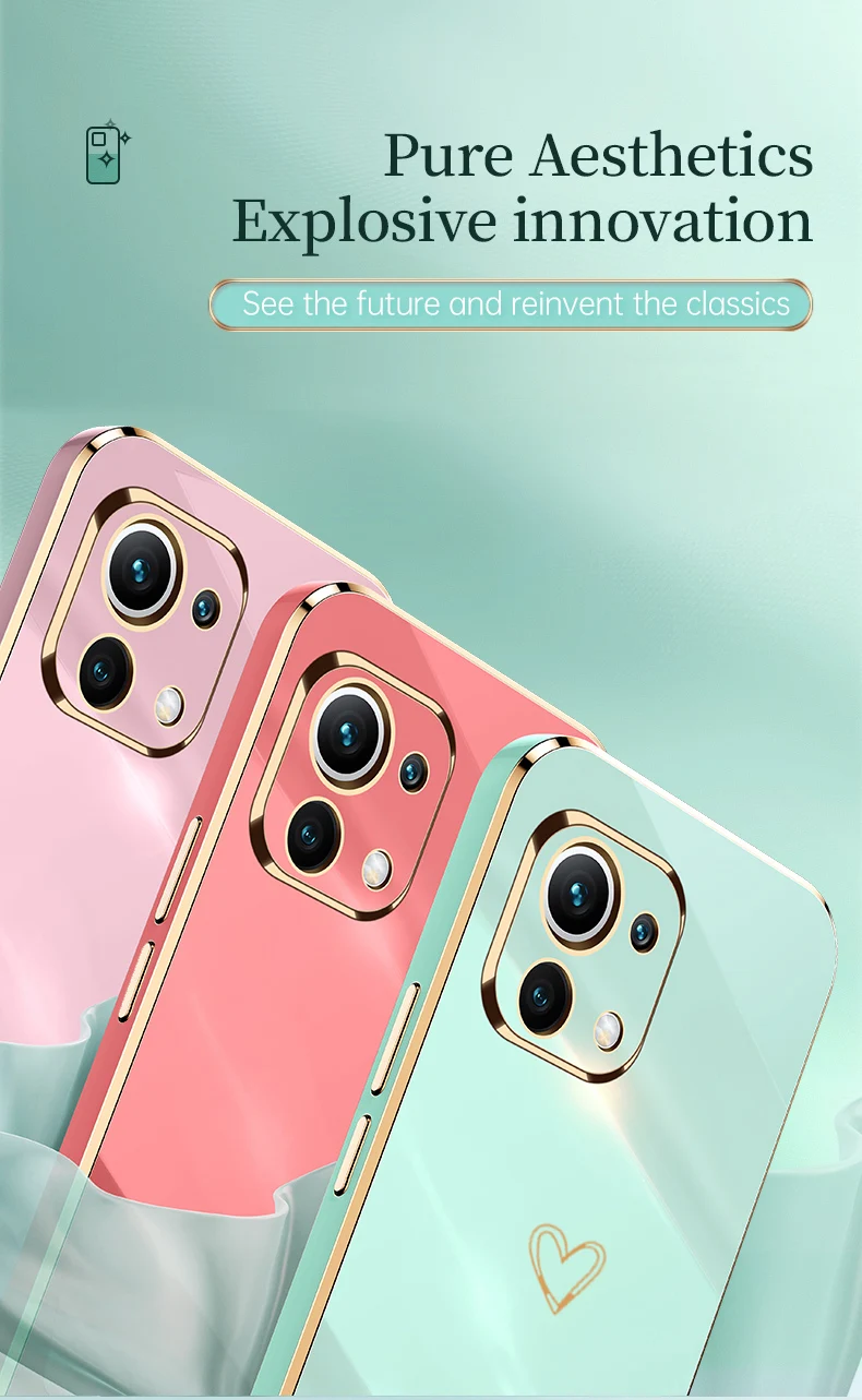 Чехол для телефона с квадратным покрытием Love Heart для Xiaomi Mi 11 Lite Mi 9 8 9T Mi 10 10T Pro Mi11 Mi10 Lite 11T Note 10 Pro Mix 4