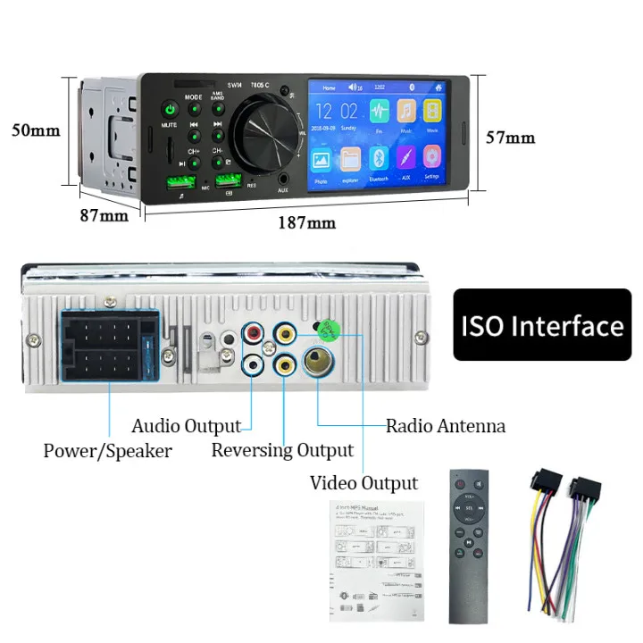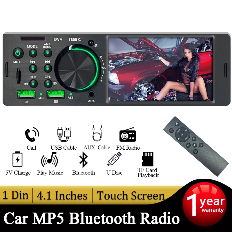 Hippcron Автомагнитола MP5 1 Din 4,1 "сенсорный экран Bluetooth аудио видео FM плеер AUXUSB быстрая зарядка ISO Удаленная стереосистема