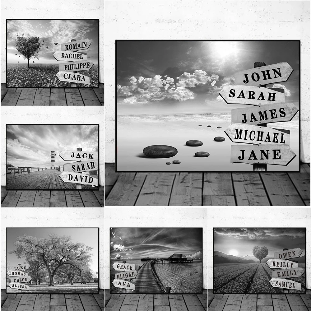 Семейный Настенный декор на заказ, Картина на холсте с персонализированным именем, художественное оформление, дорожный знак, плакат, принты, картины, Подарок на годовщину, домашний декор