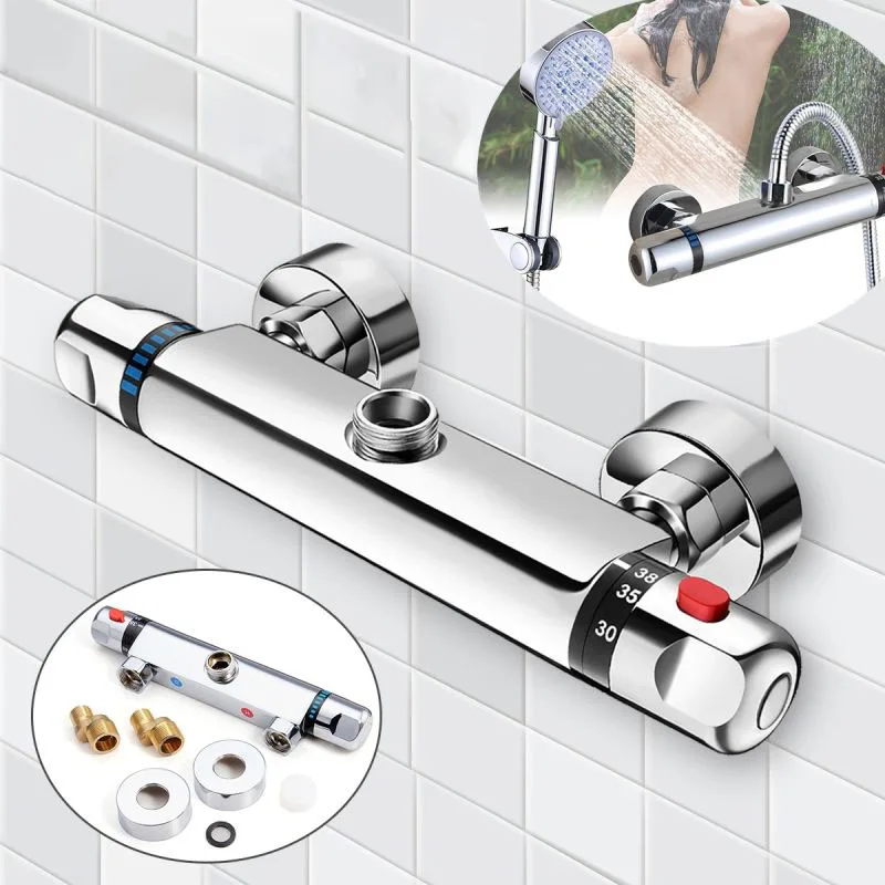 Латунный хромированный Термостатический смеситель для душа, смеситель с двойной ручкой для ванной и ванны, смеситель для душа с холоднымгорячим креплением на стену