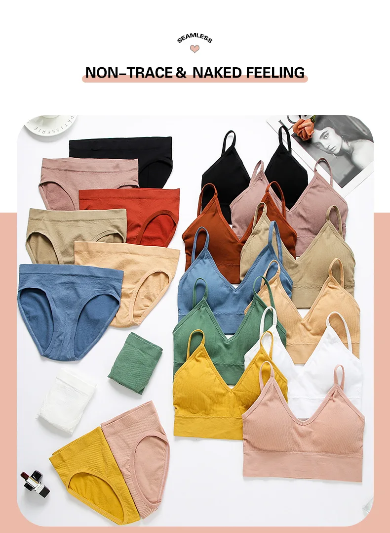 Женский комплект нижнего белья, бесшовный бюстгальтер, трусики, ниж...