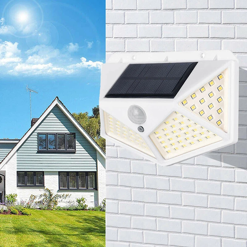 100LED солнечная Водонепроницаемая четырехсторонняя Индукционная настенная лампа для человеческого тела подходит для наружных коридоров, садовых ворот, террас на крыше, дворовых настенных вилл, витрин магазинов, магазинов, домов и других внешних сред, нет проводки, нет электричества, изысканное мастерство и уникальный вкус.