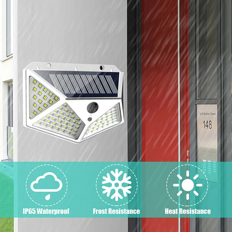 Водонепроницаемый уличный светильник на солнечной батарее, 100 светодиодный, настенный светильник с пассивным ИК датчиком движения, солнечный светильник для украшения сада
