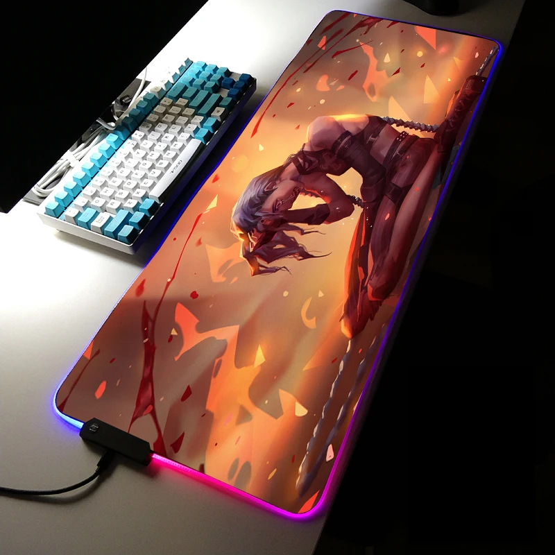 Arcane Jinx аниме коврик для мыши LOL Runaway Loli RGB большой коврик для мыши со светодиодный ной подсветкой декоративный настольный коврик для мыши