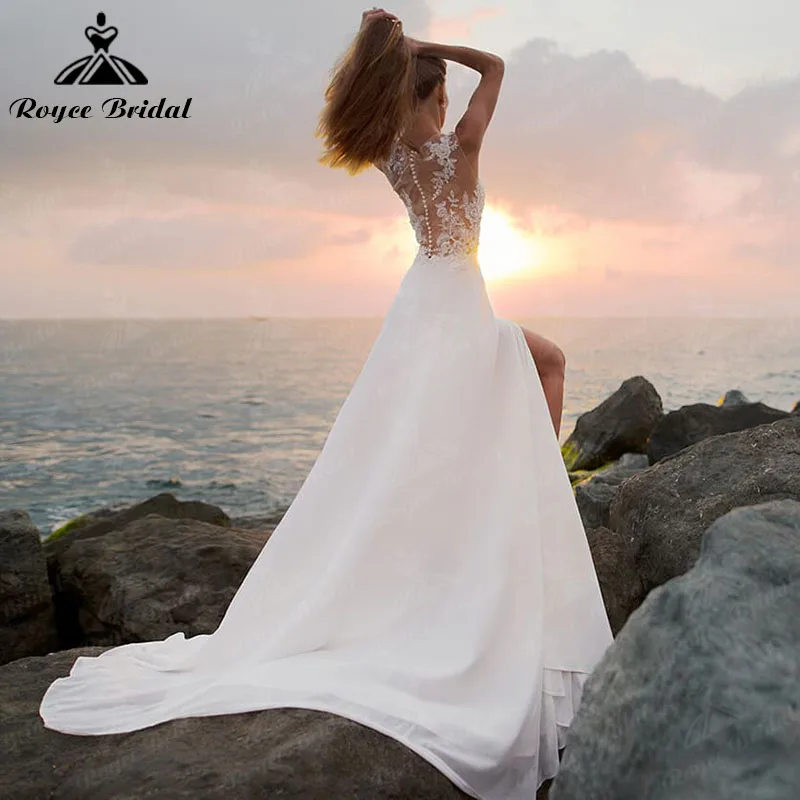 Свадебное платье с круглым вырезом, шифоновое пляжное платье А-силу...