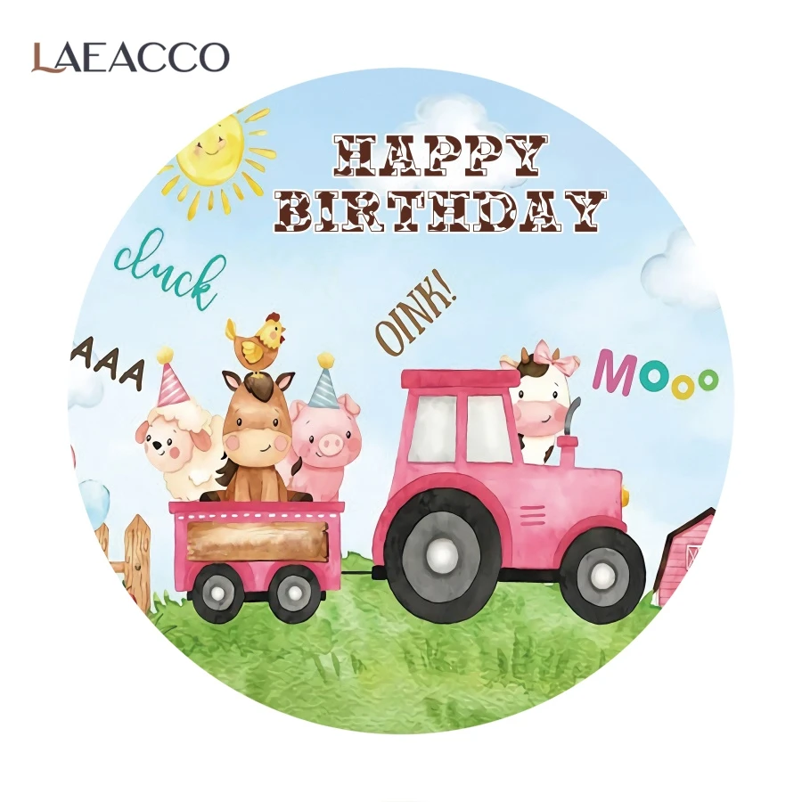 Laeacco Eleplant День Рождения Вечеринка индивидуальный постер Круг...