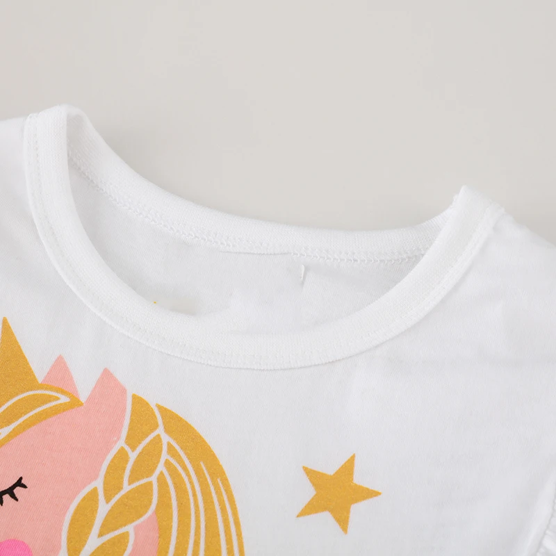 Хлопковая футболка для девочек, с коротким рукавом и единорогом