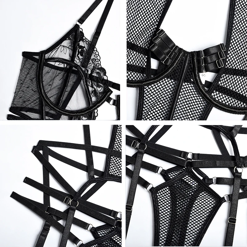 Сексуальные экзотические костюмы, чувственное нижнее белье, прозрачная повязка, эротическая одежда, порно, Готическая сетчатая одежда, Женский корсет, короткое боди, комплект