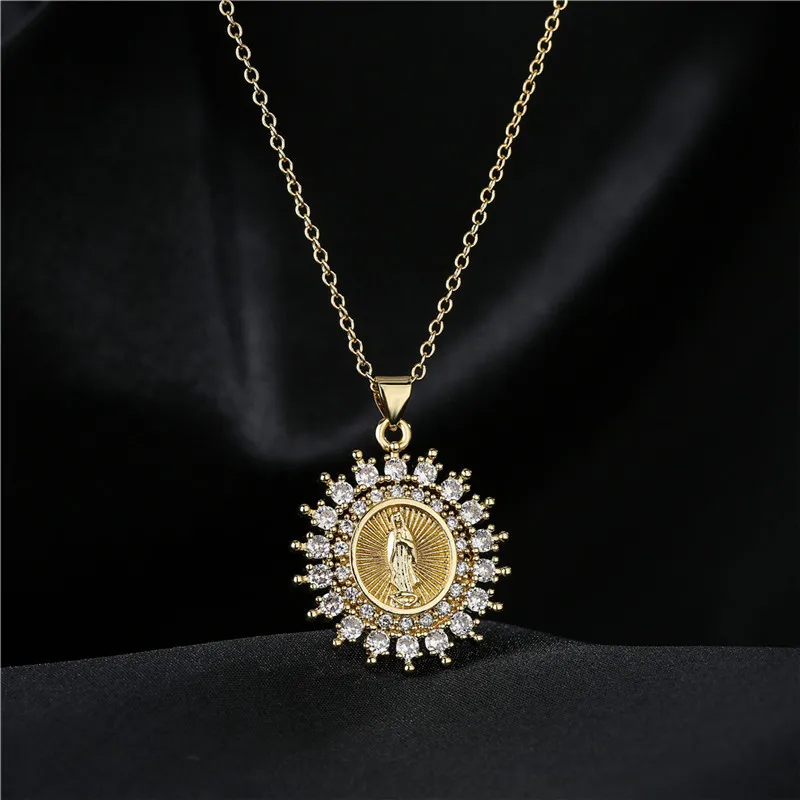 Модное ожерелье Vagzeb с подвеской в виде Девы Марии золотого цвета для женщин, очаровательное женское ювелирное изделие с кубическим цирконием, подарок 2022