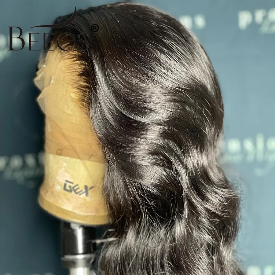 Beeos 13*4 невидимый парик из человеческих волос HD на сетке спереди, свободные волнистые волосы боб, бразильские волосы без повреждений, отбеленные узлы, HD кружево для черных женщин