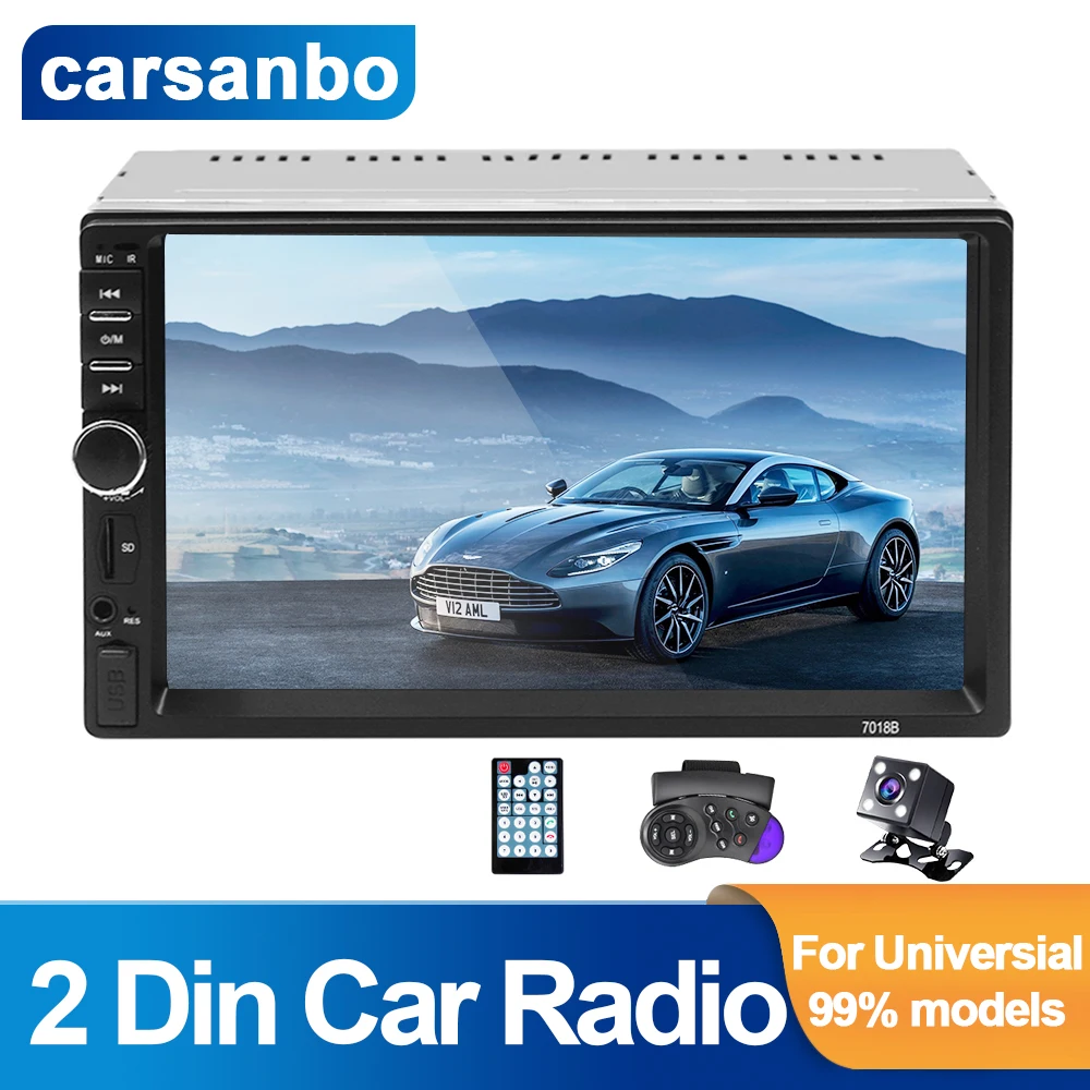 Carsanbo 7-дюймовый автомобильный радиоприемник 7018B длинный 2 Din музыкальный видеоплеер FM TF Bluetooth автомобильная стереосистема с поддержкой USB-соединения Android и IOS Телефон