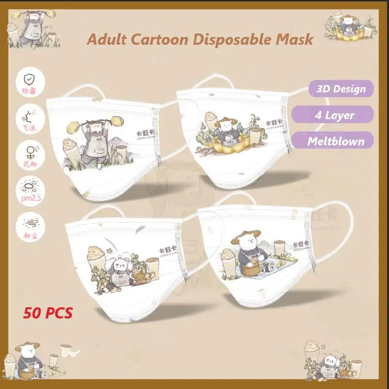 50 шт. одноразовая маска для лица от вируса для взрослых с мультяшным принтом 3-слойная противопылевая маска meltblow 2022 Новогодняя защитная маска