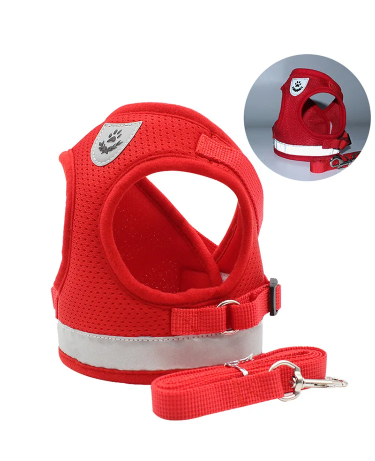Регулируемый поводок для собаки, Светоотражающий Жилет для питомца, поводок для щенка, полиэстеровый сетчатый поводок для небольших средних домашних животных