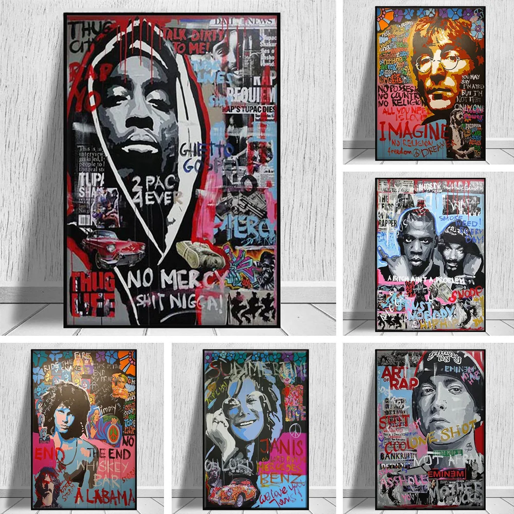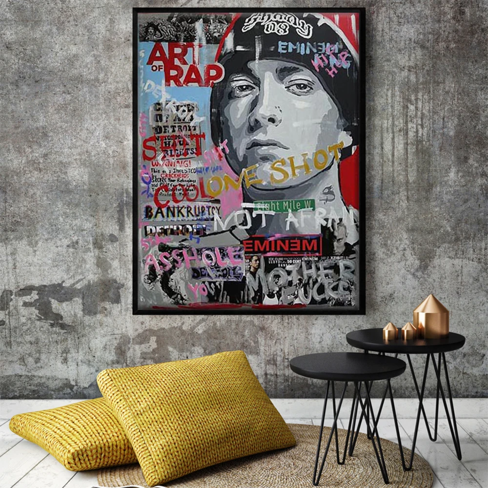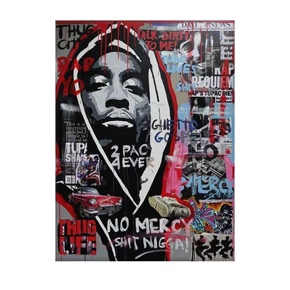 Граффити уличное настенное искусство рэп музыка звезда холст картина хип-хоп рэпер плакат печать 2 PAC Eminem картина для домашнего декора