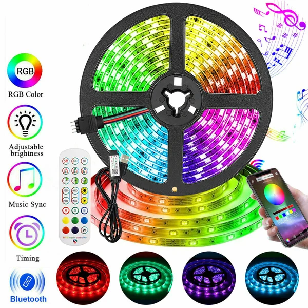 Светодиодная лента RGB5050, подсветильник ка для телевизора с дистанционным управлением на 24 клавиши, с музыкальным Bluetooth-приложением, для декора комнаты, вечевечерние