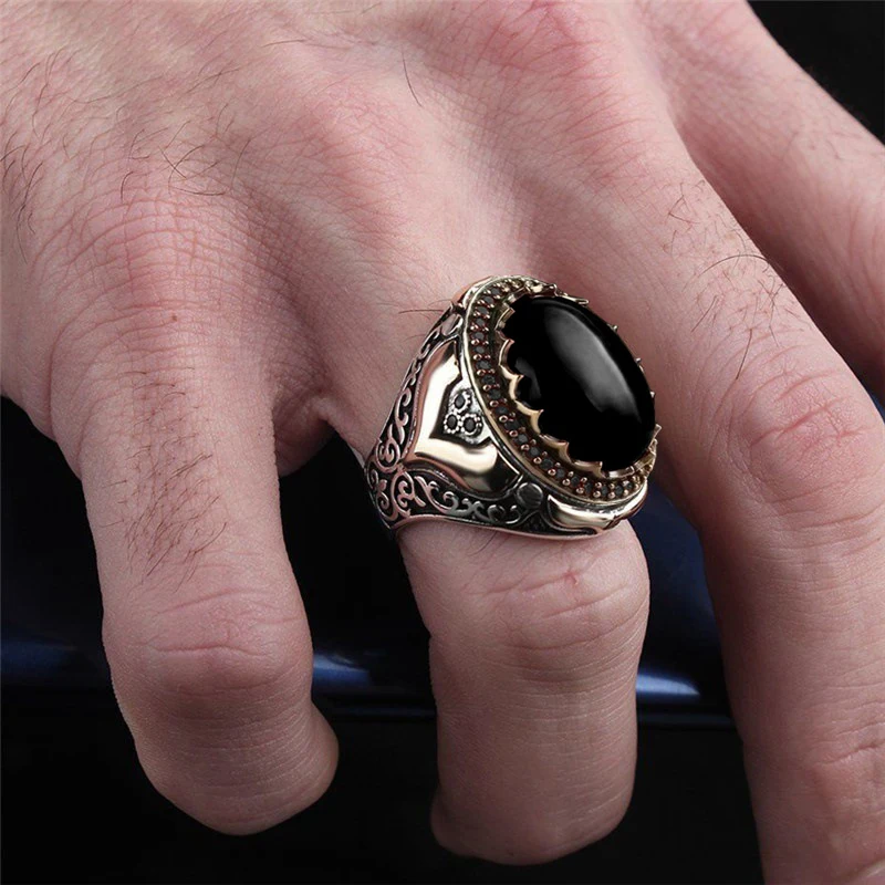 Новые Ретро турецкие ручной работы серебряные мужские кольца винтажные резные полые узоры камень циркония чорный кольца для женщин панк ювелирные изделия