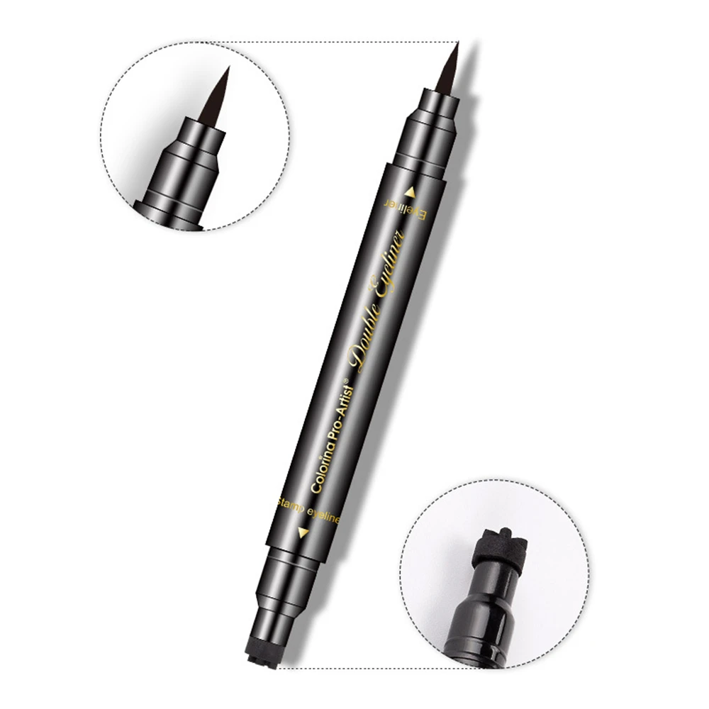 Двухсторонняя подводка для глаз, большой штамп, жидкая подводка для глаз, водостойкая быстросохнущая Черная Подводка для глаз, карандаш, косметика для женщин