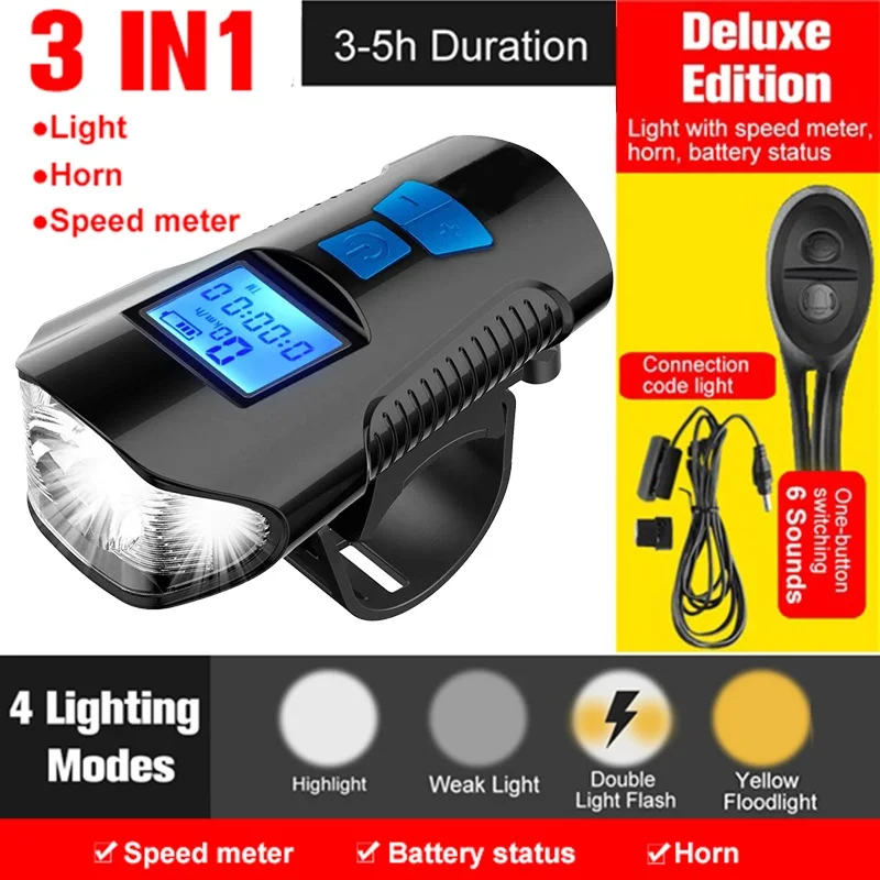 Водонепроницаемый велосипедный фонарь с зарядкой от USB, передняя фара с ЖК-дисплеем, спидометр, велосипесветильник головной свет, звуковой сигнал