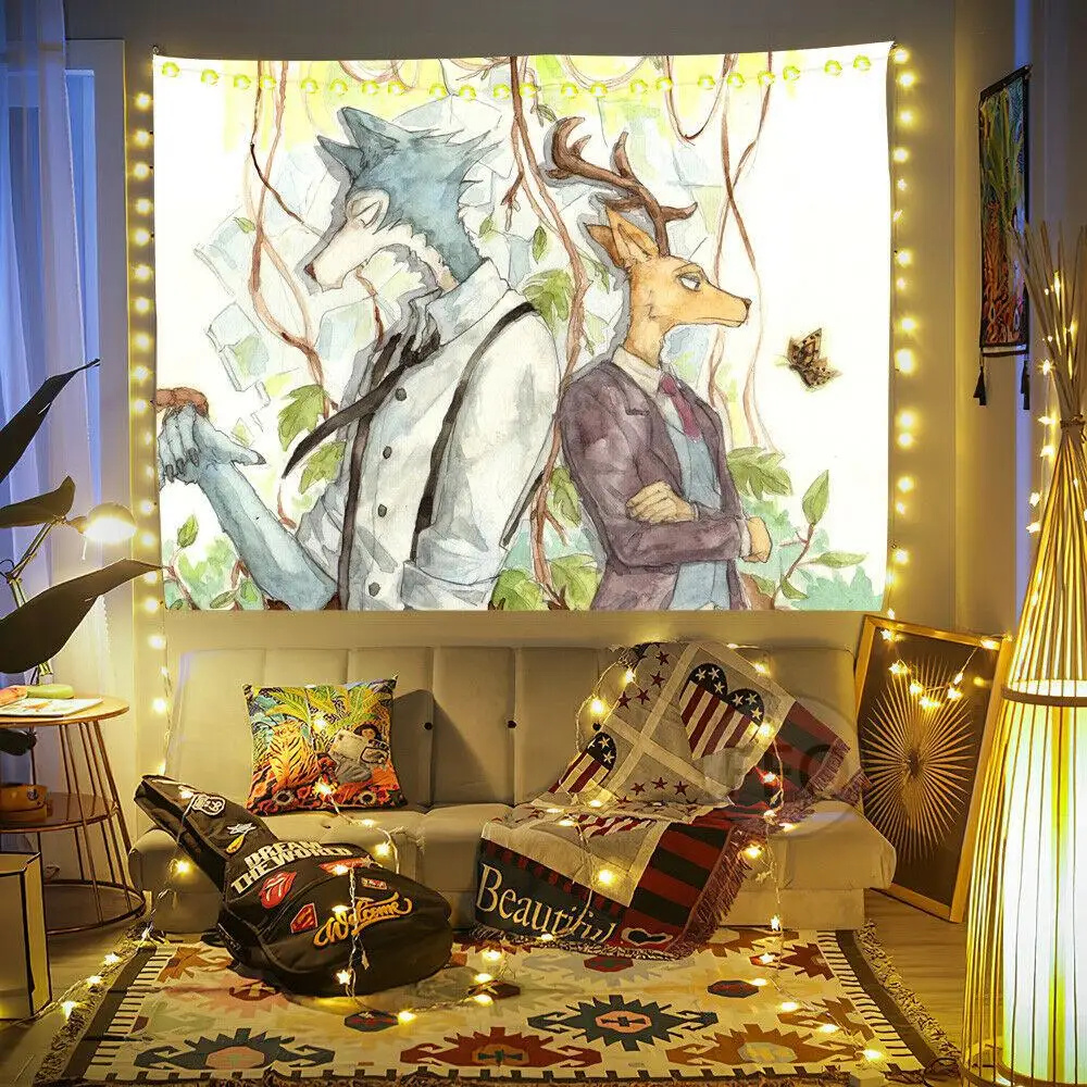 Японский гобелен в стиле аниме BEASTARS Legosi, настенный гобелен с мультяшными рисунками, красивый декор для комнаты, ковры, украшение для спальни
