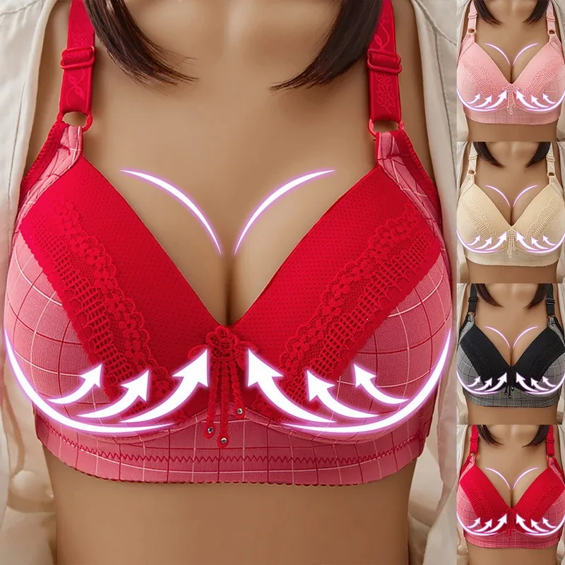 Тонкое женское нижнее белье, женский бюстгальтер пуш-ап, клетчатый кружевной бесшовный бюстгальтер с цветочной подвеской 46105 B C с большой грудью, бюстгальтер без косточек, новинка