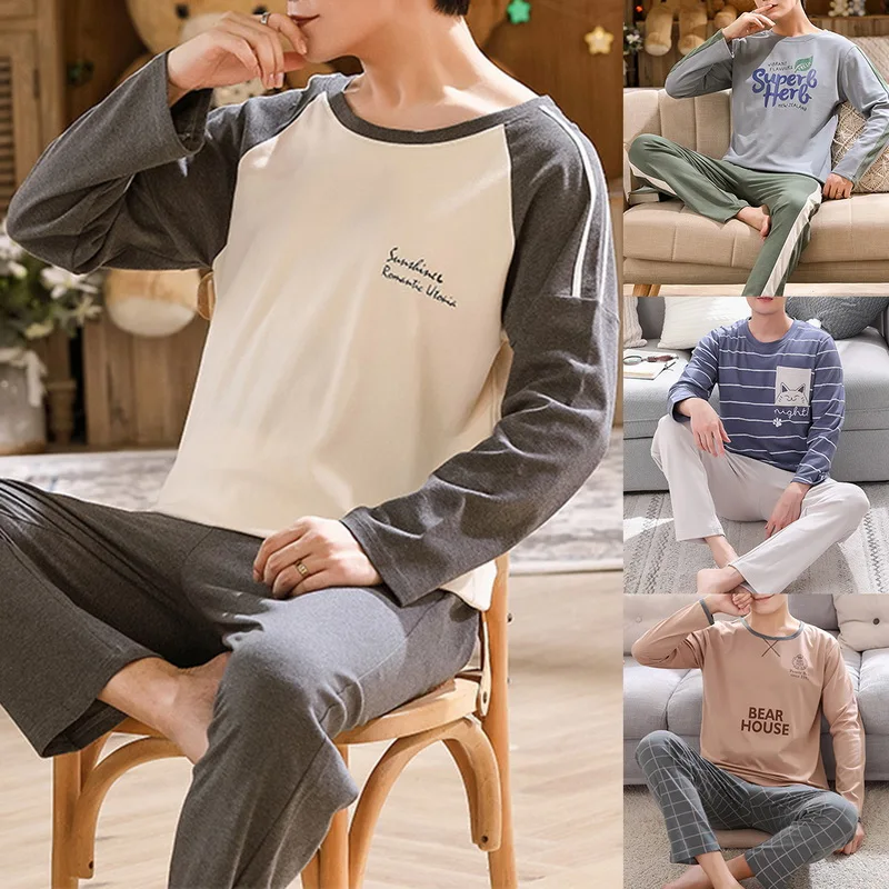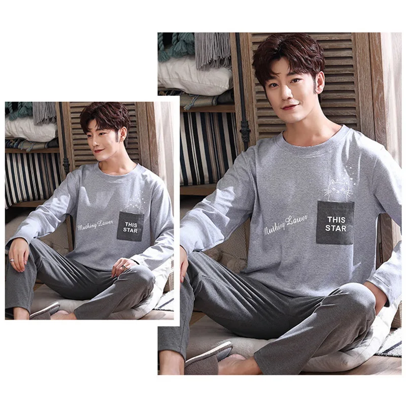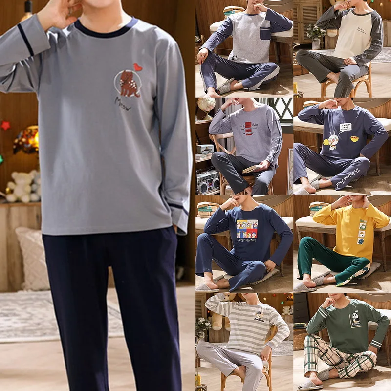 Мужская зимняя теплая пижама из 100% хлопка, одежда для сна, домашняя одежда, пижама с мультяшным принтом панды, мужской повседневный костюм с длинным рукавом