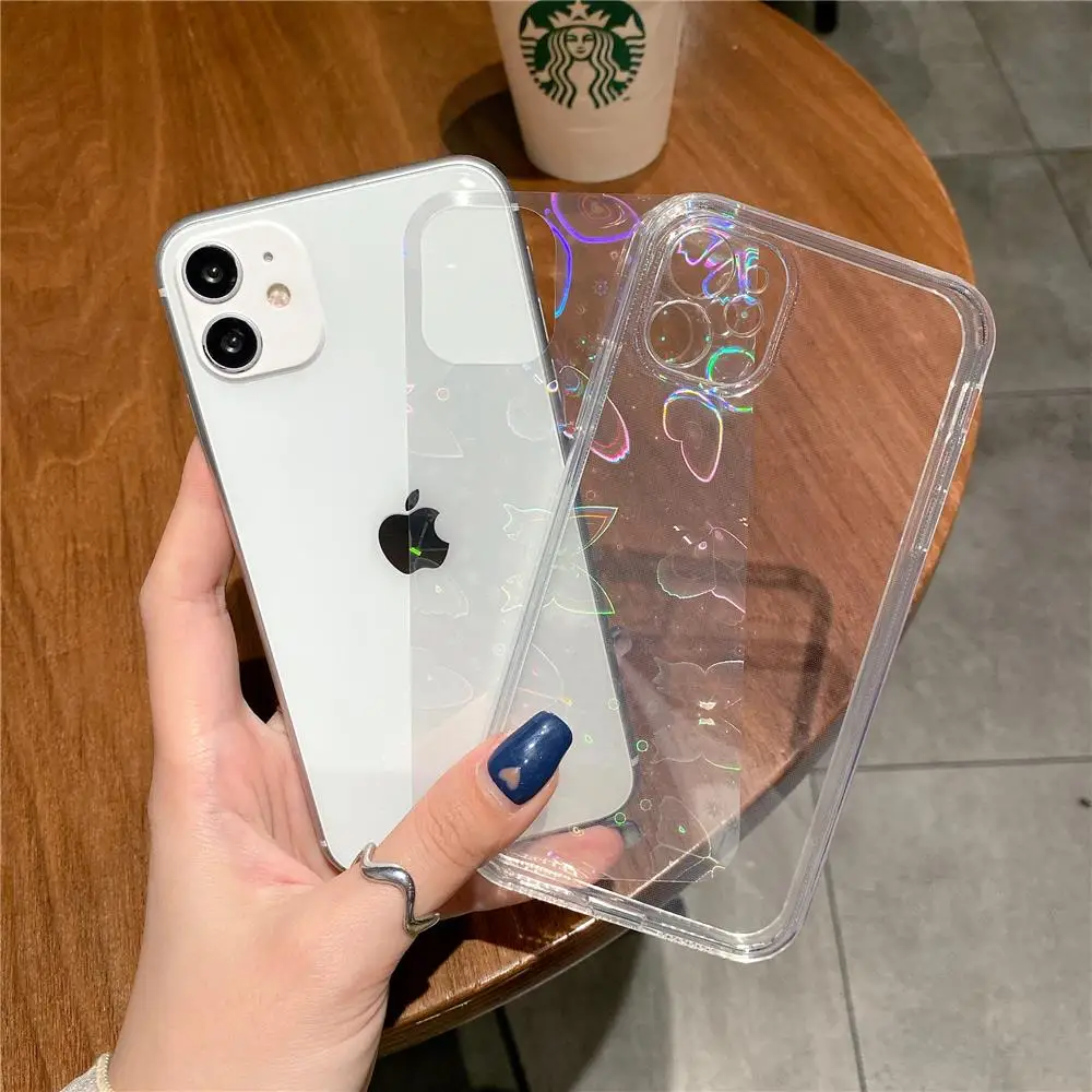 Голографическая Бабочка лазерный Цветок Прозрачный чехол для iPhone 11 13 12 Pro XS Max Mini X XR SE 2020 7 8 Plus противоударный чехол