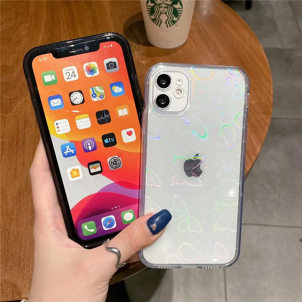 Роскошный прозрачный мягкий чехол с градиентным лазером и любовным ...