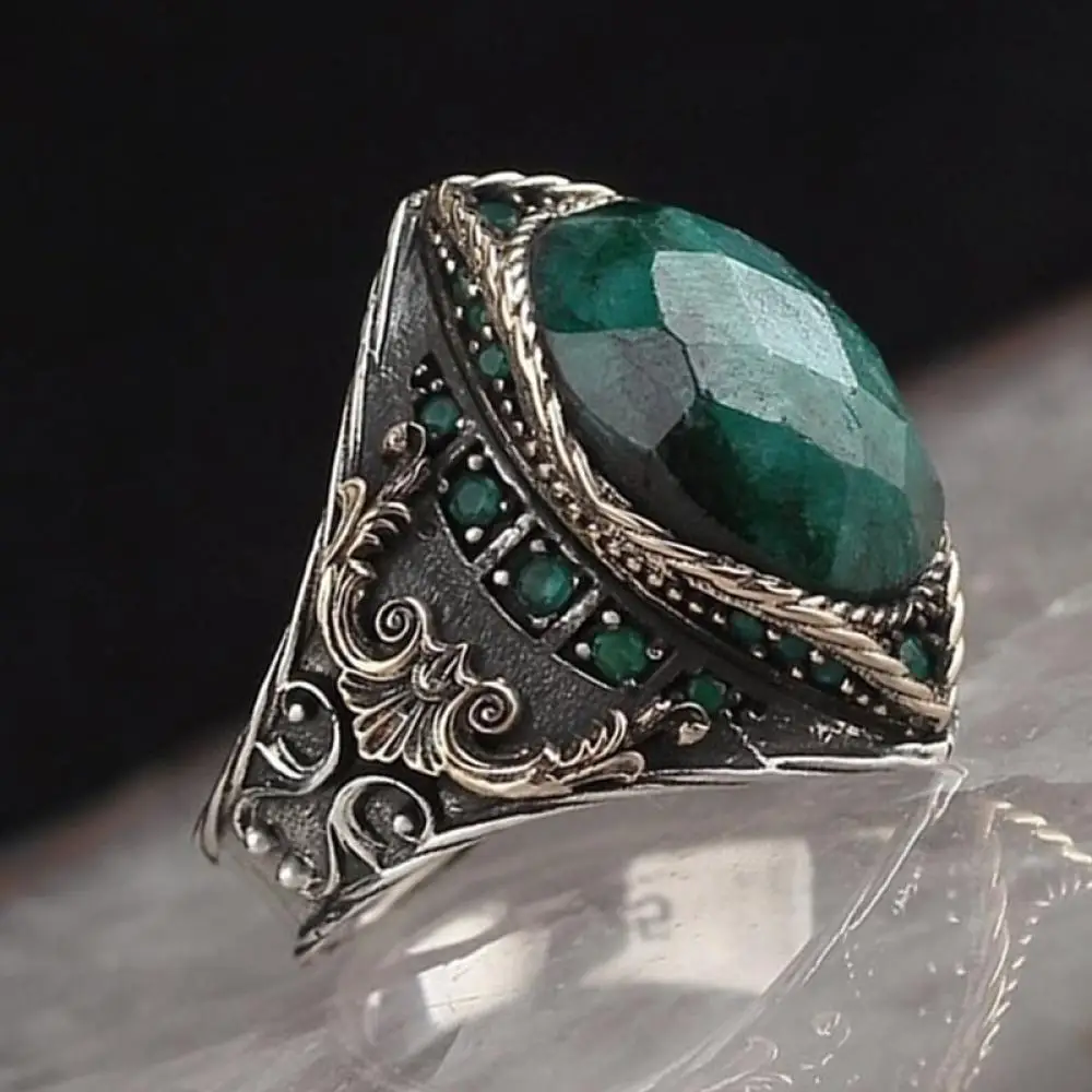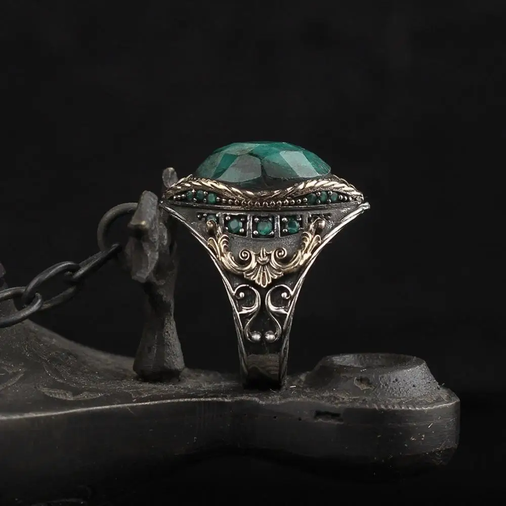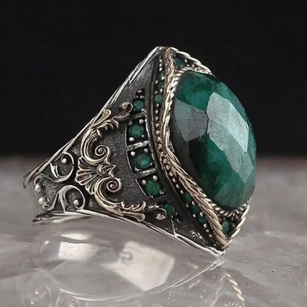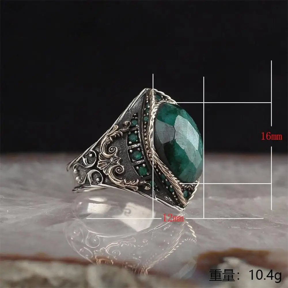 2022 Новые Панк мусульманские украшения турецкие ручной работы серебряные мужские кольца винтажные резные с узором орла темно-зеленые кольца с цирконием