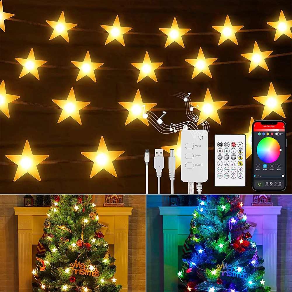 Эти декоративные гирлянды сказочной звезды идеально подходят для рождественской елки, Нового года, свадьбы, дня рождения, бара и украшения дома. Мерцающие Звездные огни являются водонепроницаемыми и мягкими и могут быть обернуты вокруг растений, перил, заборов и палаток