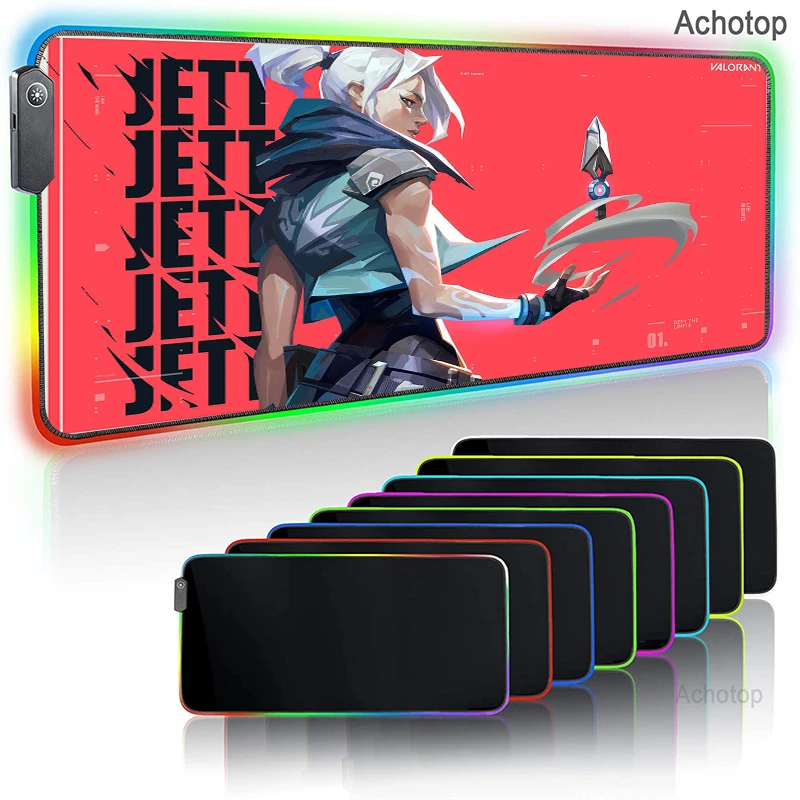 Игровой коврик для мыши Valorant RGB, большой компьютерный коврик для мыши, геймер XXL, светодиодный коврик для мыши с подсветкой, коврик для клавиатуры, стол