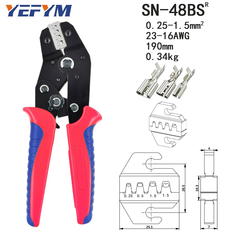 YEFYM SN-48BS2549 обжимные инструменты для XH2.54 Tab2.8 4,8 6,3ТрубчатыеИзолированные клеммы с 8 насадками в комплекте Электрические плоскогубцы
