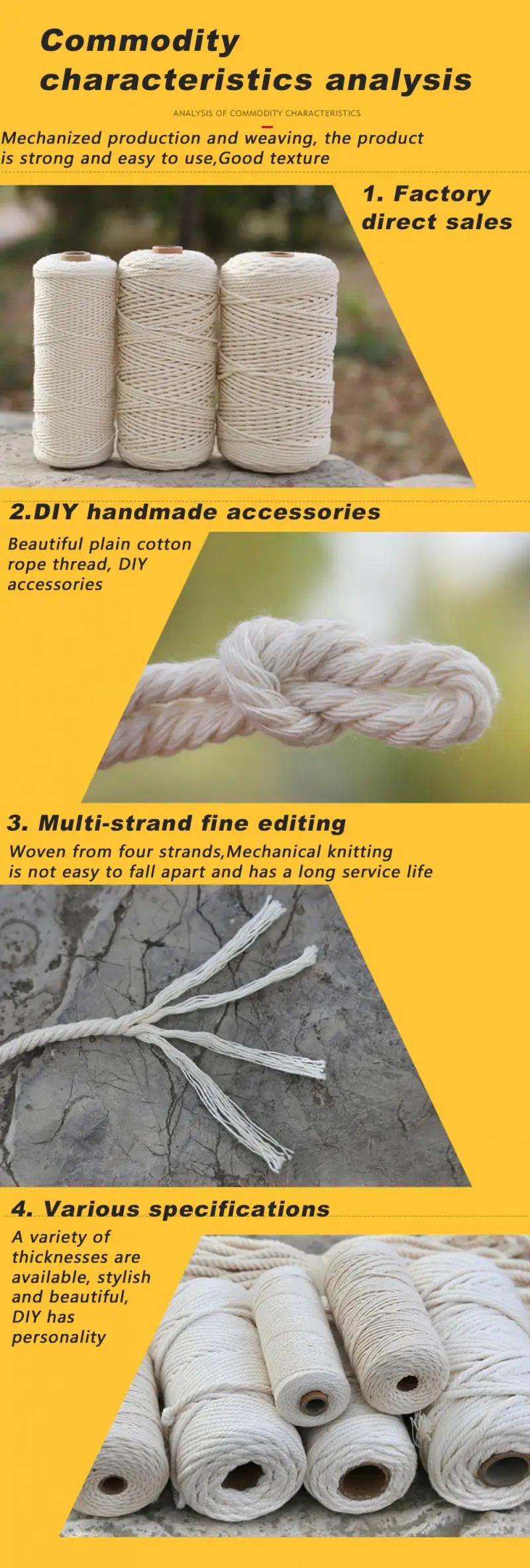 Плетеный шнур для макраме 123456мм, из натурального хлопка, веревка, макраме, нитка сделай сам, рукоделие, вязание, вешалка для растений, настенные подвески