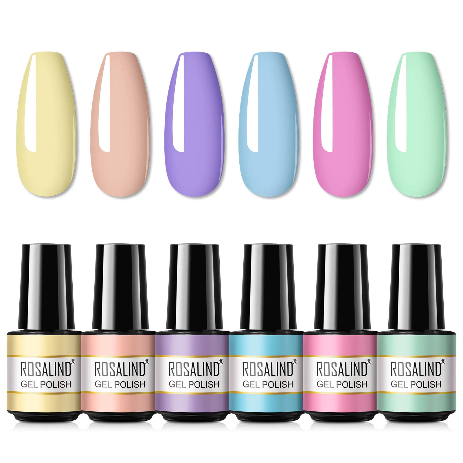 Набор гелевых лаков ROSALIND для ногтей, чистый цвет, набор для ногтей, блеск Vernis, полуперманентный, для дизайна ногтей, основа, верхнее покрытие, УФ светодиодный Гель-лак, набор