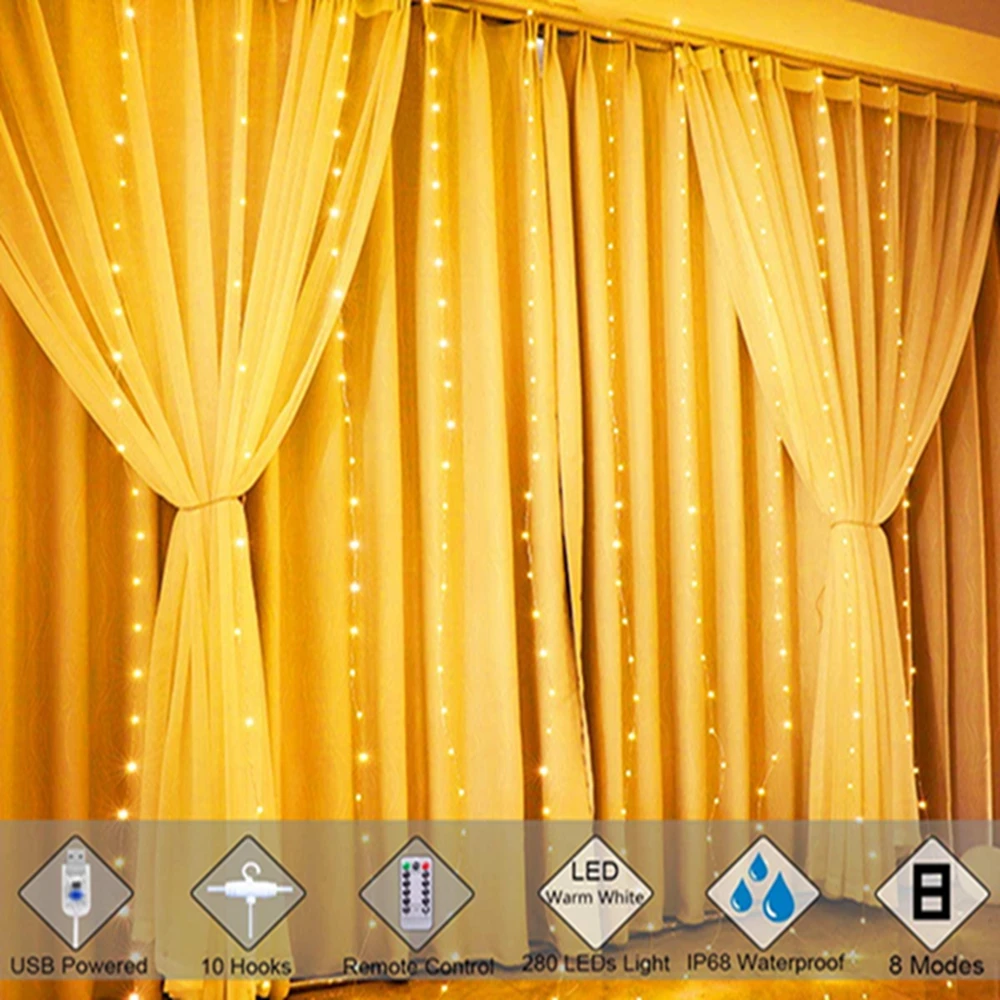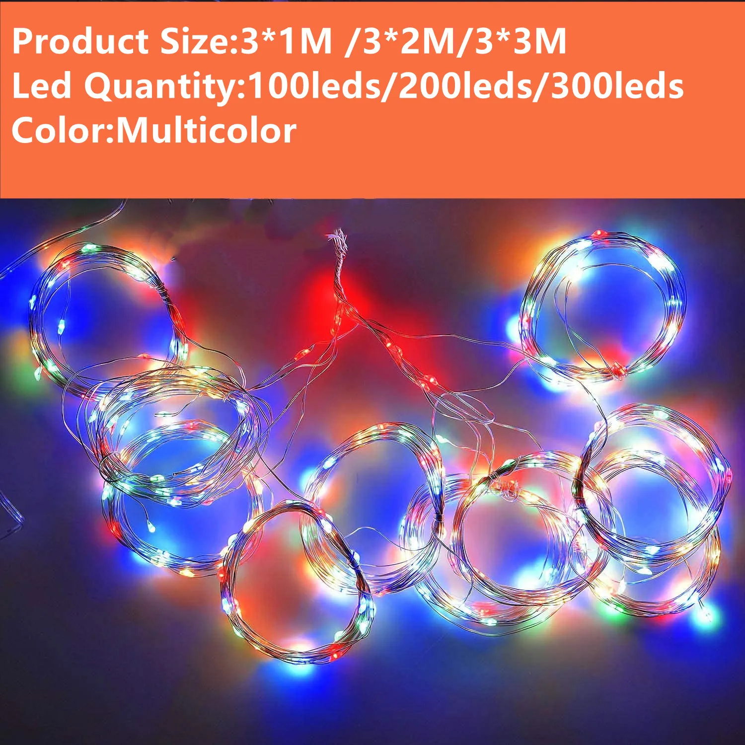Гирлянда-занавеска, светодиодные гирлянды, 3 х1 м, 3 х2 м, 3 х3 м, 220 В переменного тока, для комнаты, для нового года, свадьбы, Рождества, дома, гирлянда