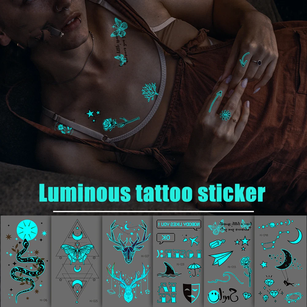 Светящаяся тату-наклейка, временная бабочка, звезда, поддельная тат...