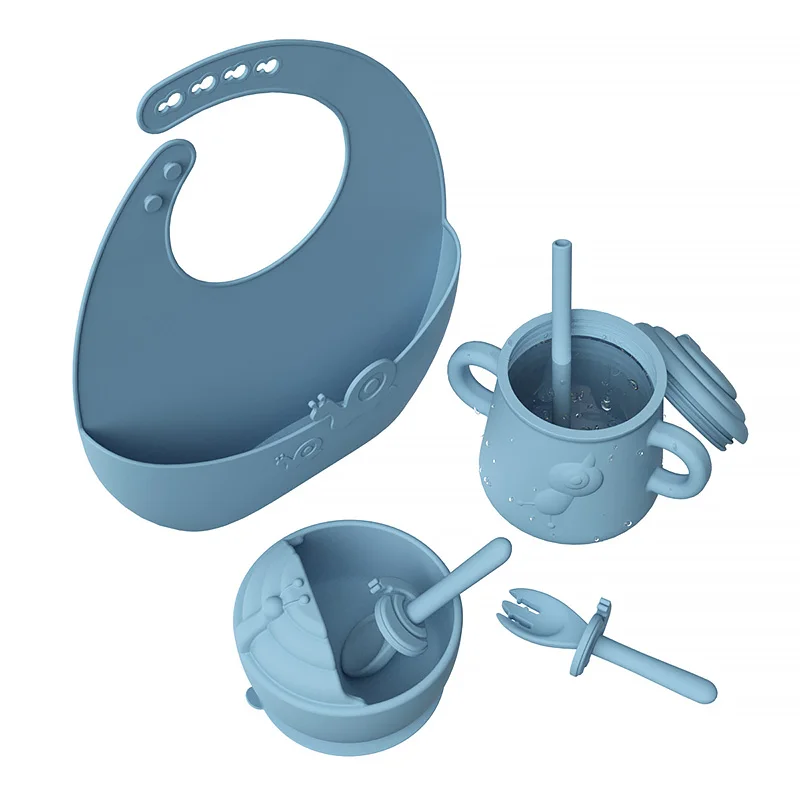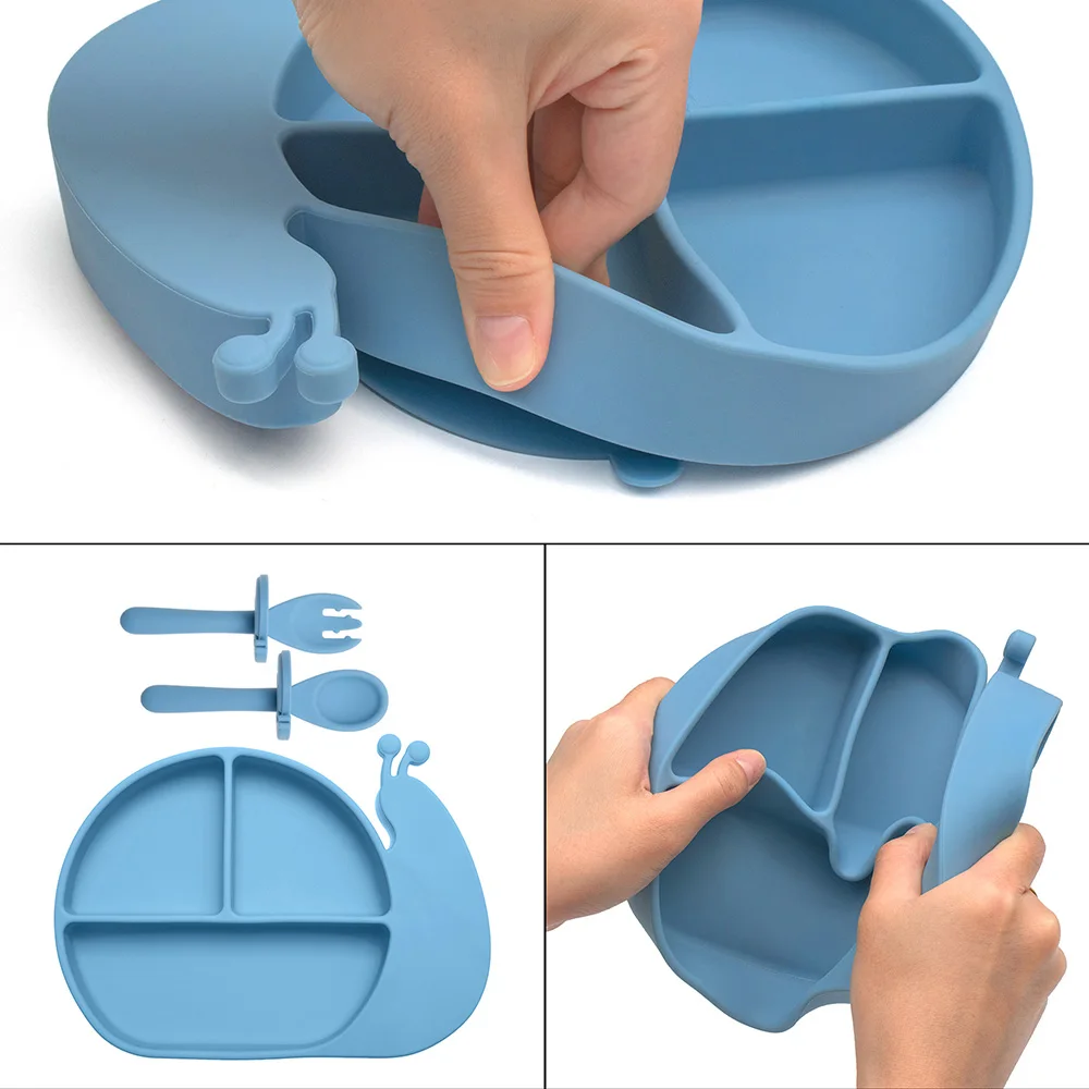 1 комплект, силиконовая Нескользящая тарелка для детей, миска и тарелка для улиток, мультяшная чашка, набор ложка и вилка силиконовая для кормления малышей, миска
