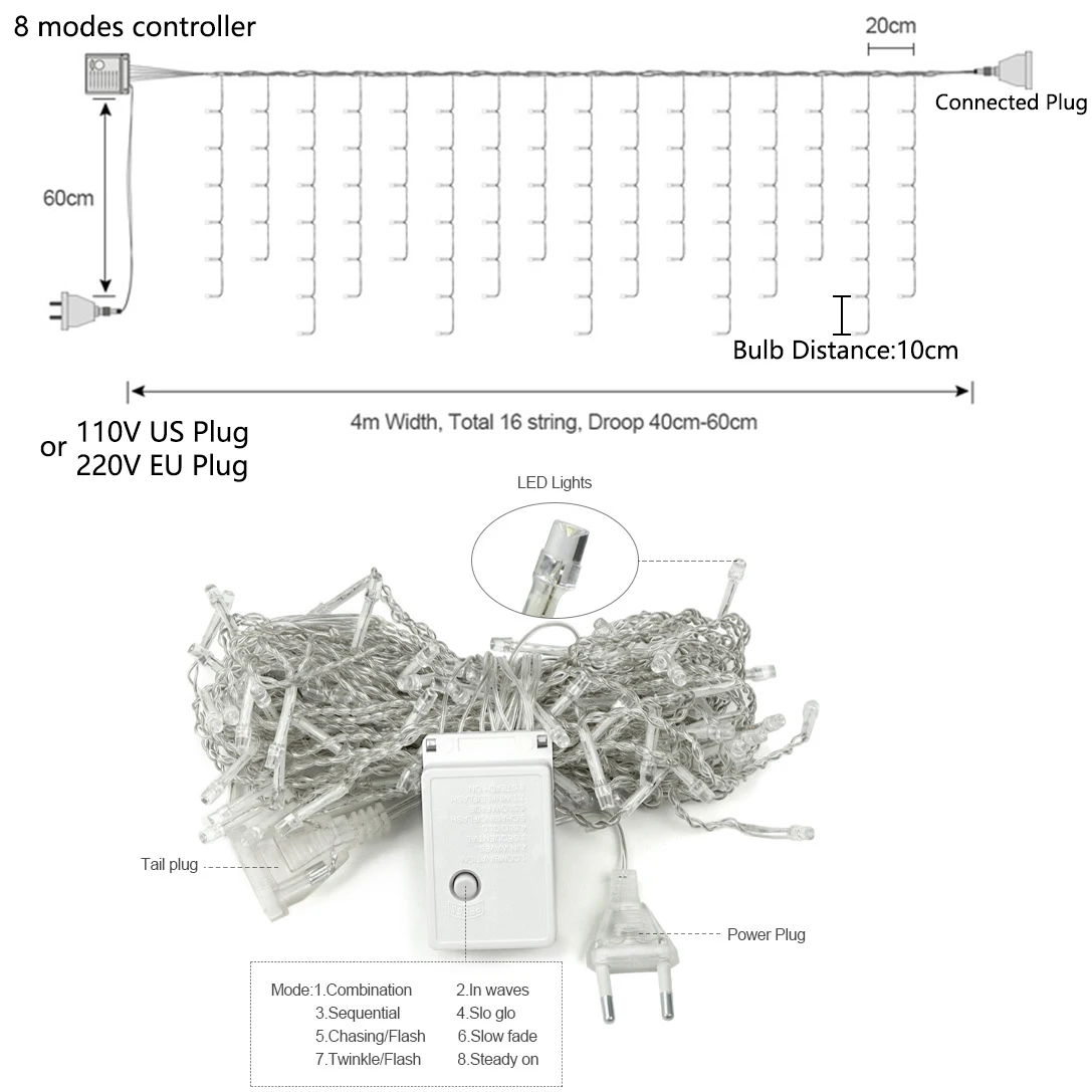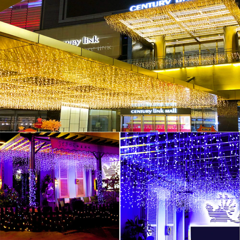 СВЕТОДИОДНАЯ Гирлянда-занавес в виде сосулек, 5 м, 0,4-0,6 м, 220 В переменного тока, Рождественская гирлянда, украшение для сада, улицы, уличное праздничное освещение