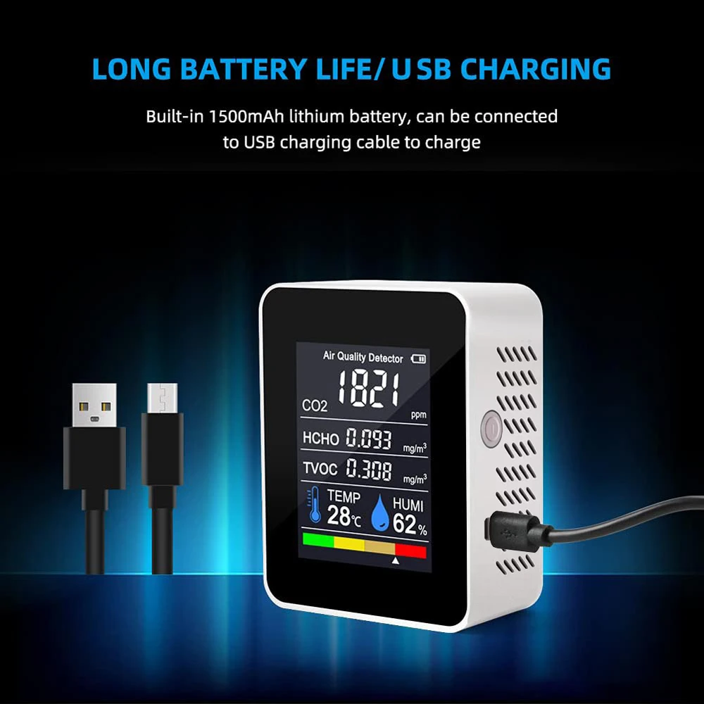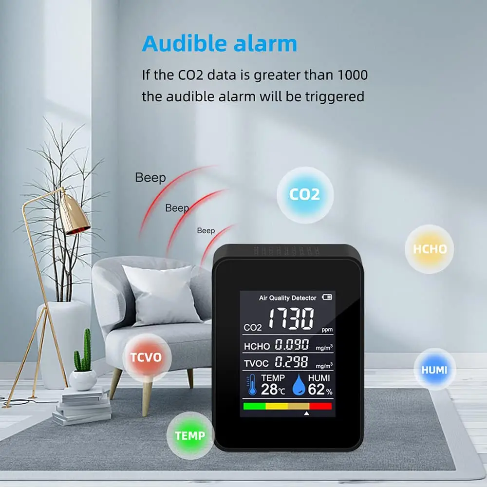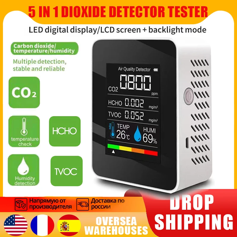 Цифровой измеритель CO2 5 в 1, тестер с датчиком температуры и влажности, датчик качества воздуха, детектор углекислого газа, формальдегида, формальдегида, HCHO